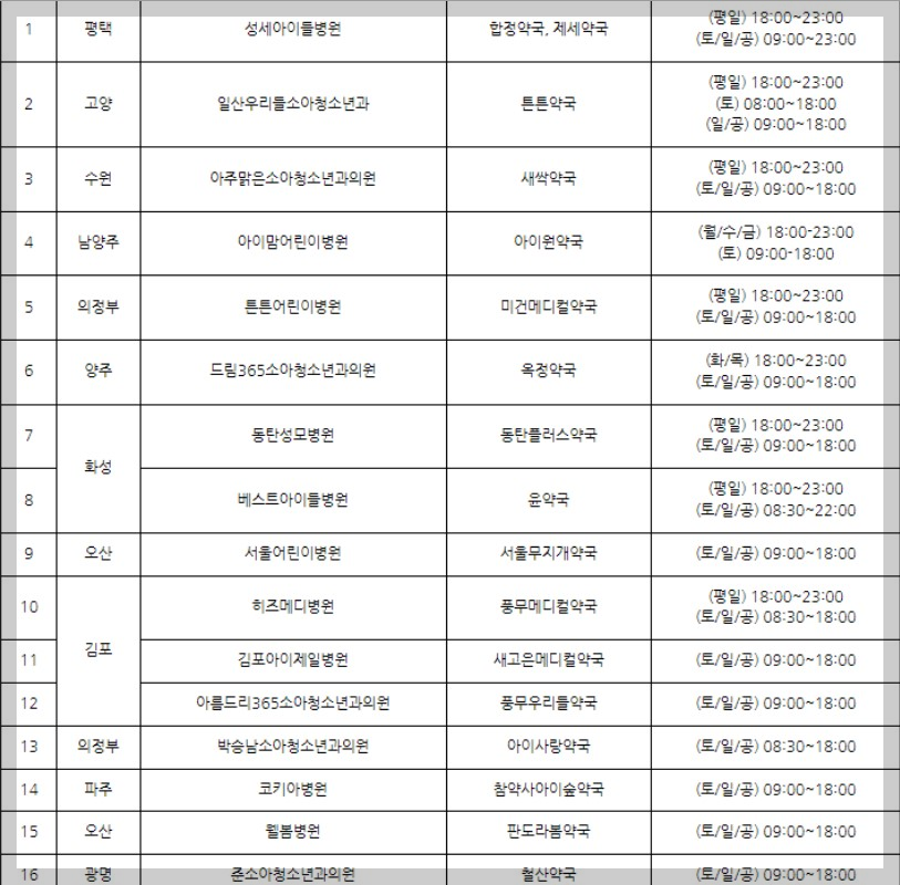 최근 야간 소아응급실의 운영중단과 운영시간을 단축하는 곳이 늘어남에 따라 야간진료와 휴일진료가 가능한