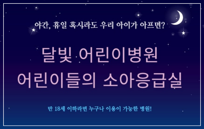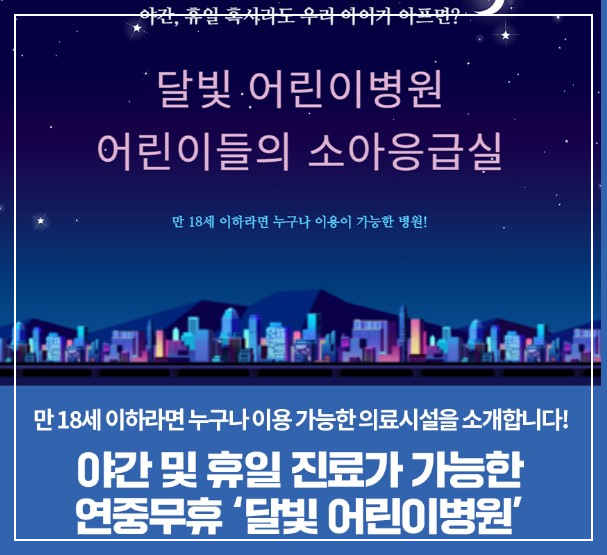 야간 및 휴일진료가 가능한 연중무휴 달빛 어린이 병원을 소개합니다.