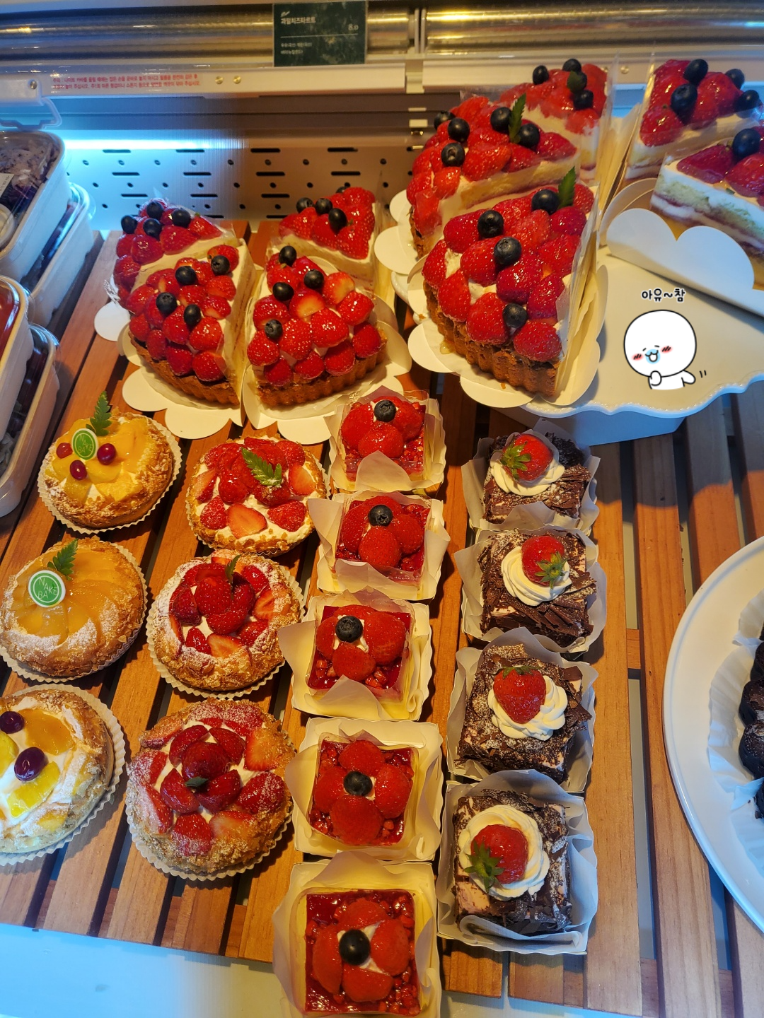 요 핑크색 딸기가 올려진 빵도 사고 싶었으나 밥을 많이 먹고 온 관계로 이건 패스하고 베리들이 올려진 조작 케이크로 결정하였어요.