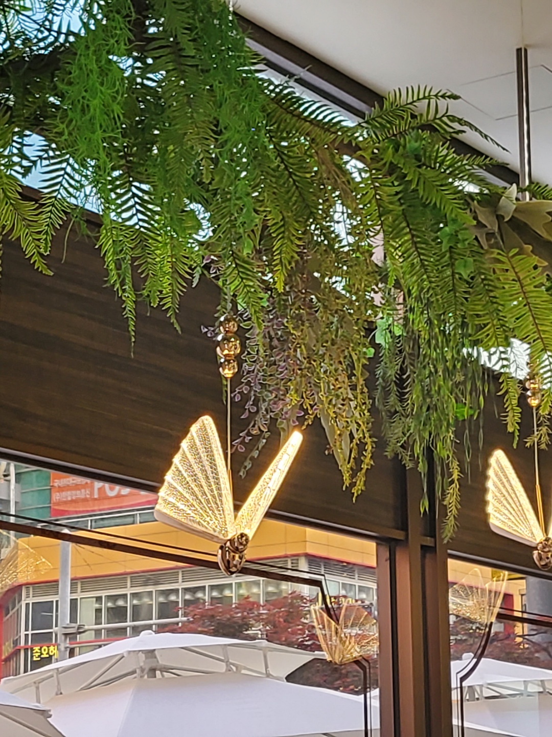 나비 모양의 조명이 특이하기도 하고 예뻐서 찍어보았어요.